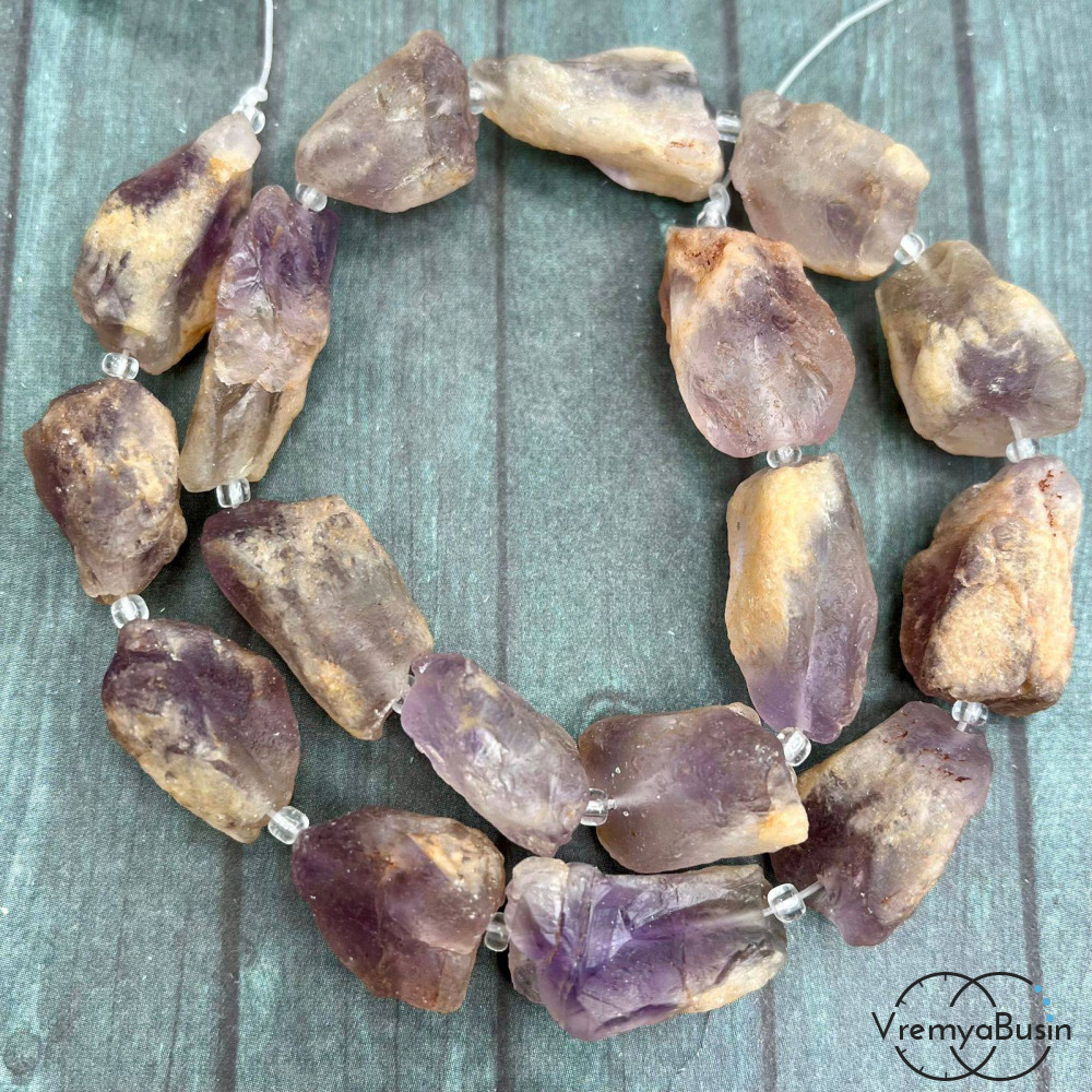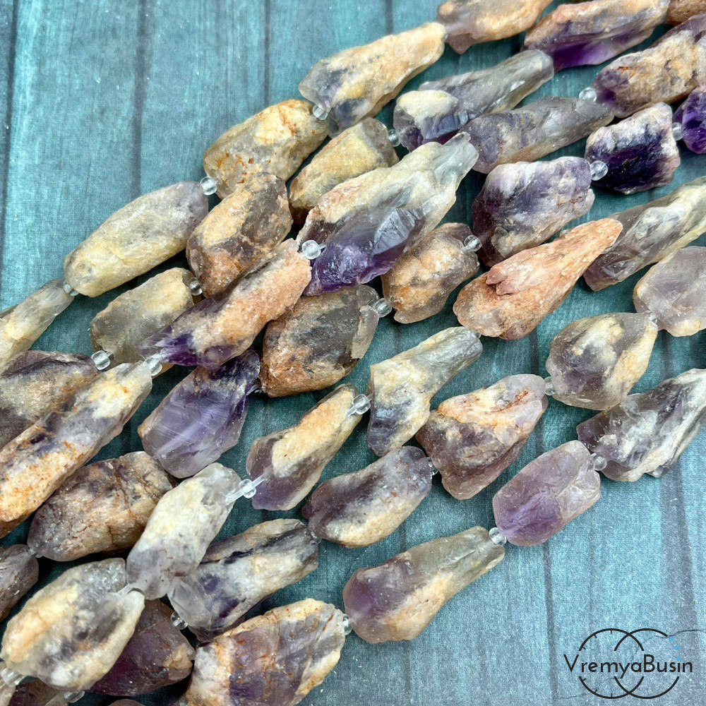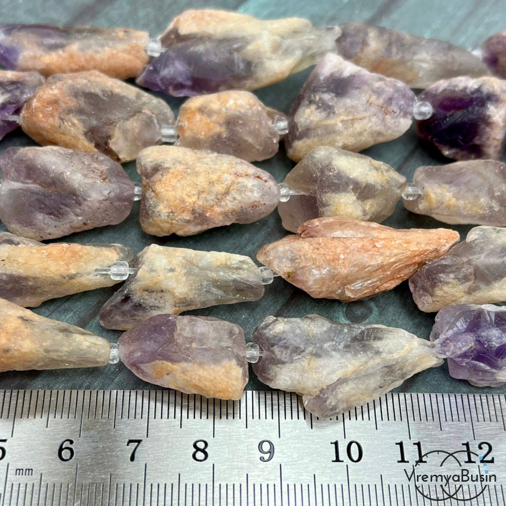 Аметист с гетитом, ауралит, бусины из необработанного камня, ок. 12х20-25 мм (нить, ок. 16 шт.)