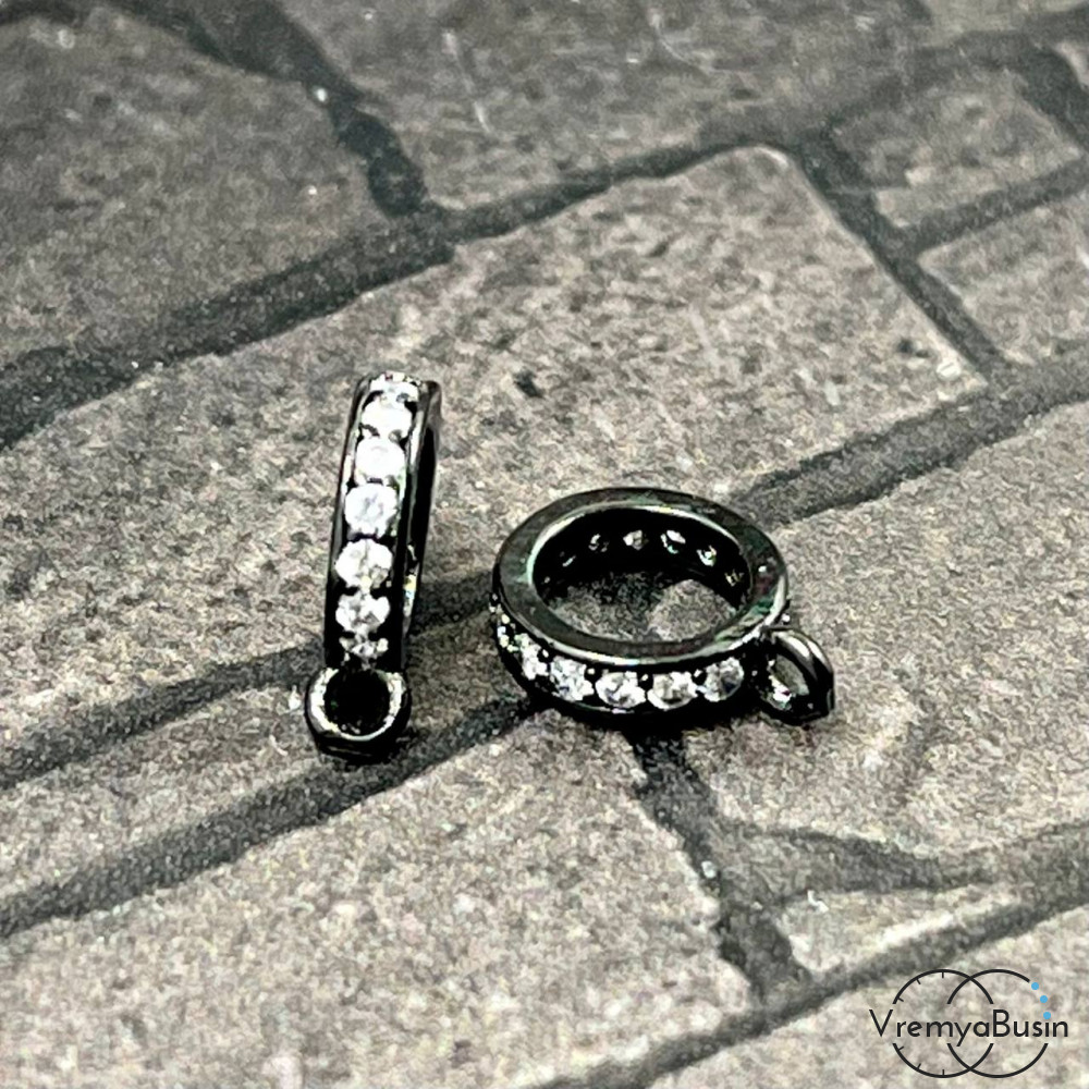 • Бейл с петлей, 2х10 мм, 5 мм, латунь с черным родиевым покрытием и фианитами (1 шт.)