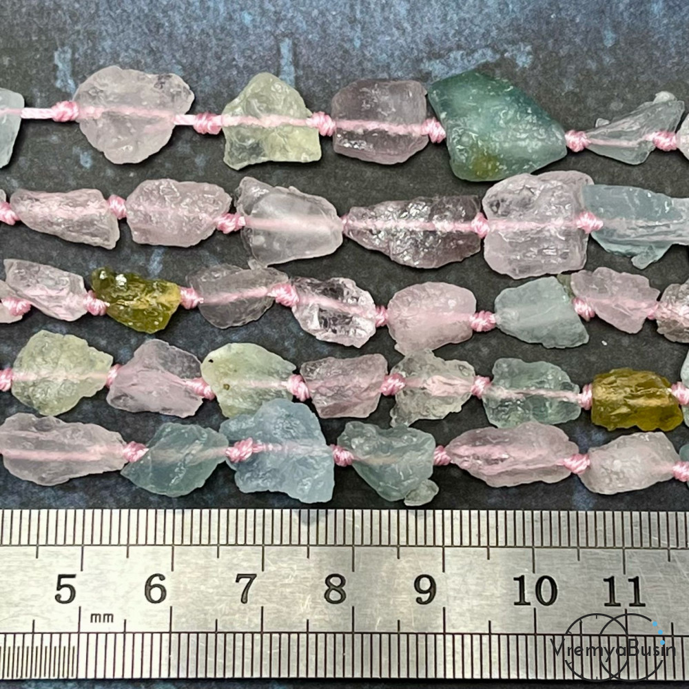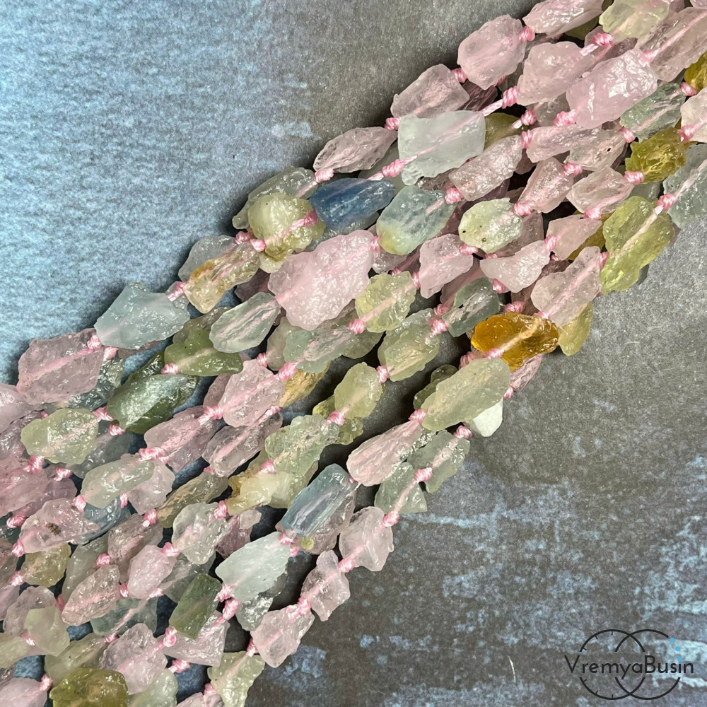 Берилл, мелкие кусочки необработанного камня (нить, ок. 32 шт.)