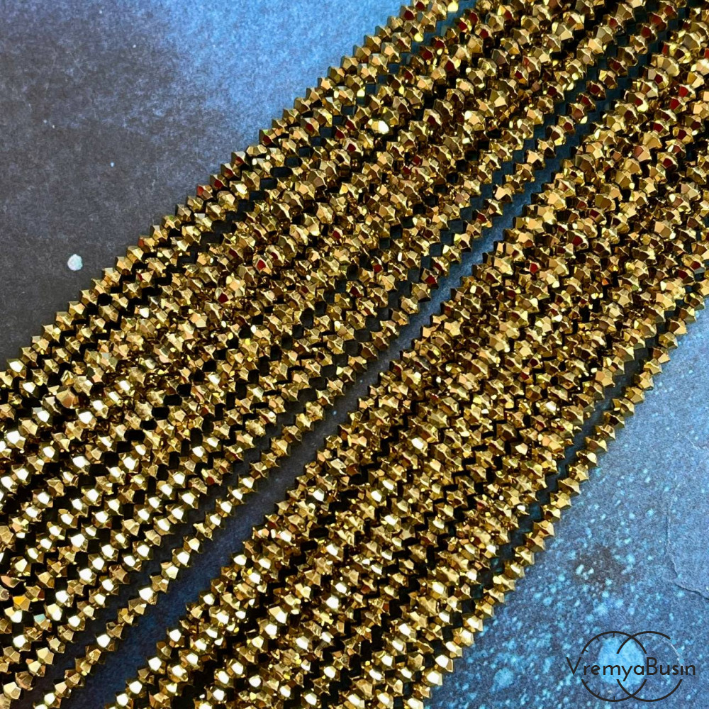 • Бусины хрустальные кристаллики, блюдце 2х3.5 мм (1/2 нити, ок. 95 шт.)