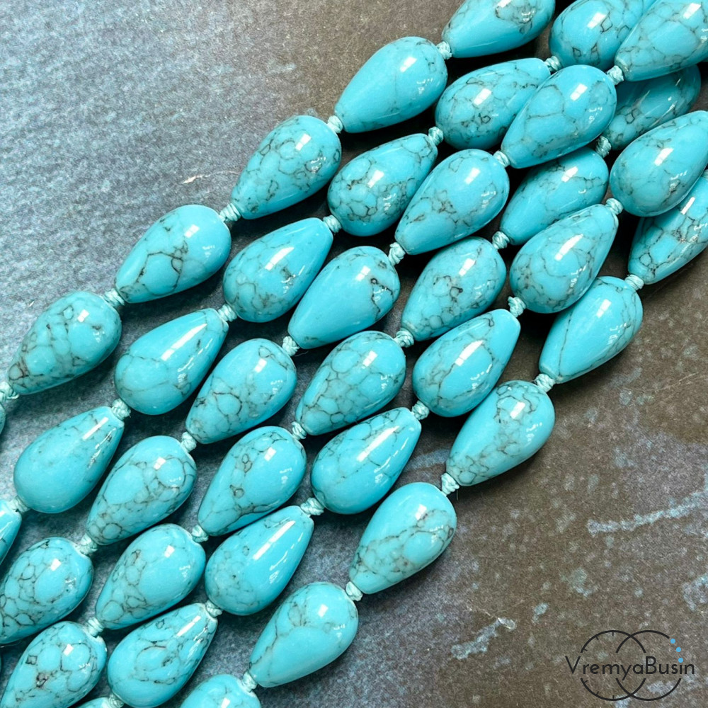 • Бирюза имит. из говлита, капля гладкая 10х16 мм, цв. голубой (1/2 нити, ок. 15 шт.)