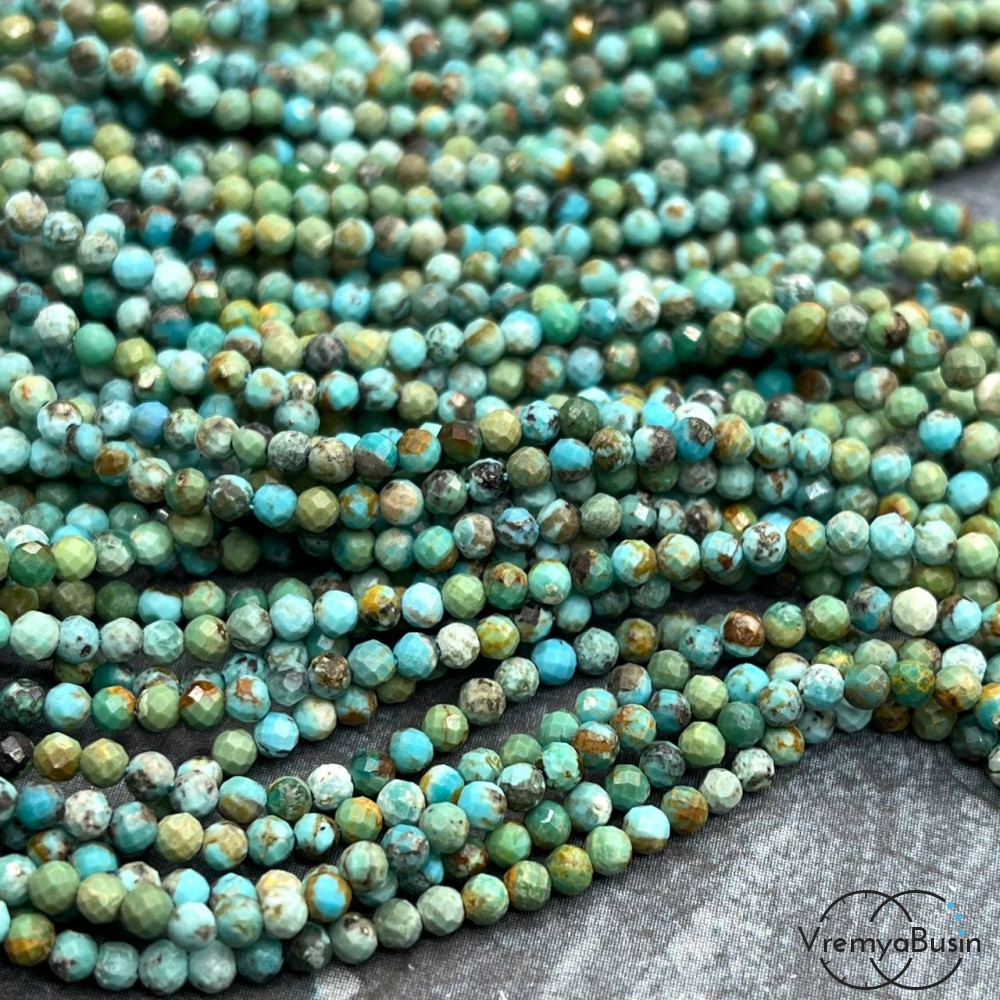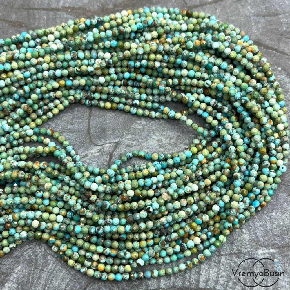 Бирюза, мелкие бусины с микроогранкой, шарик 2,5 мм (нить, ок. 40 см.)