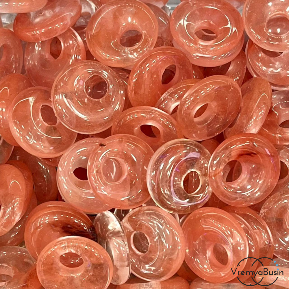 • Халцедон розовый. Кулон из камня пончик, бублик 18 мм (1 шт.)
