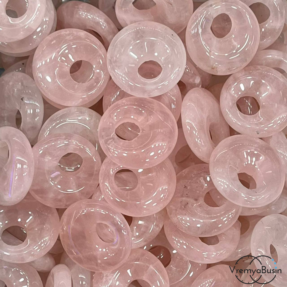 • Розовый кварц. Кулон из камня пончик, бублик 18 мм (1 шт.)