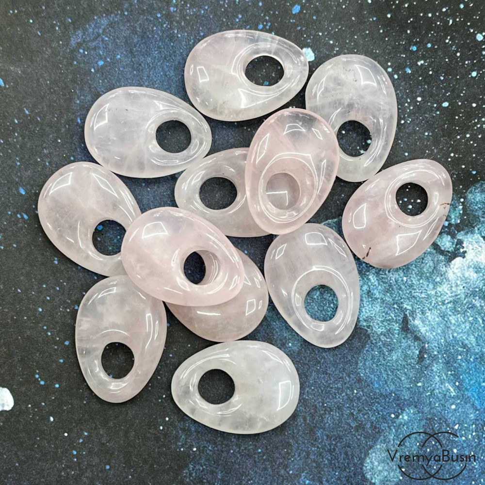 • Розовый кварц. Кулон из камня пончик, бублик 18х25х6 мм (1 шт.)
