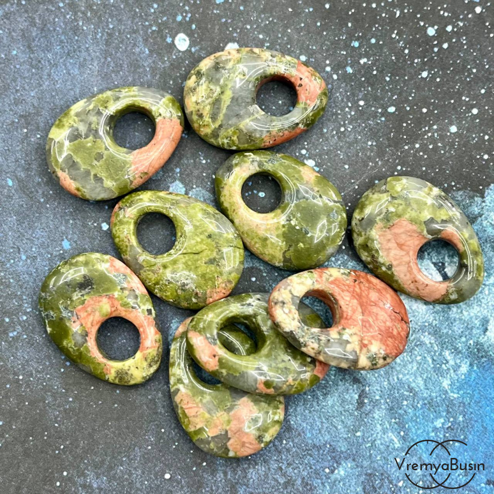 • Унакит. Кулон из камня пончик, бублик 18х25х6 мм (1 шт.)