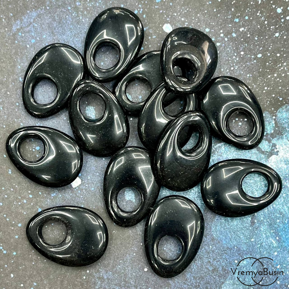 • Черный агат. Кулон из камня пончик, бублик 18х25х6 мм (1 шт.)