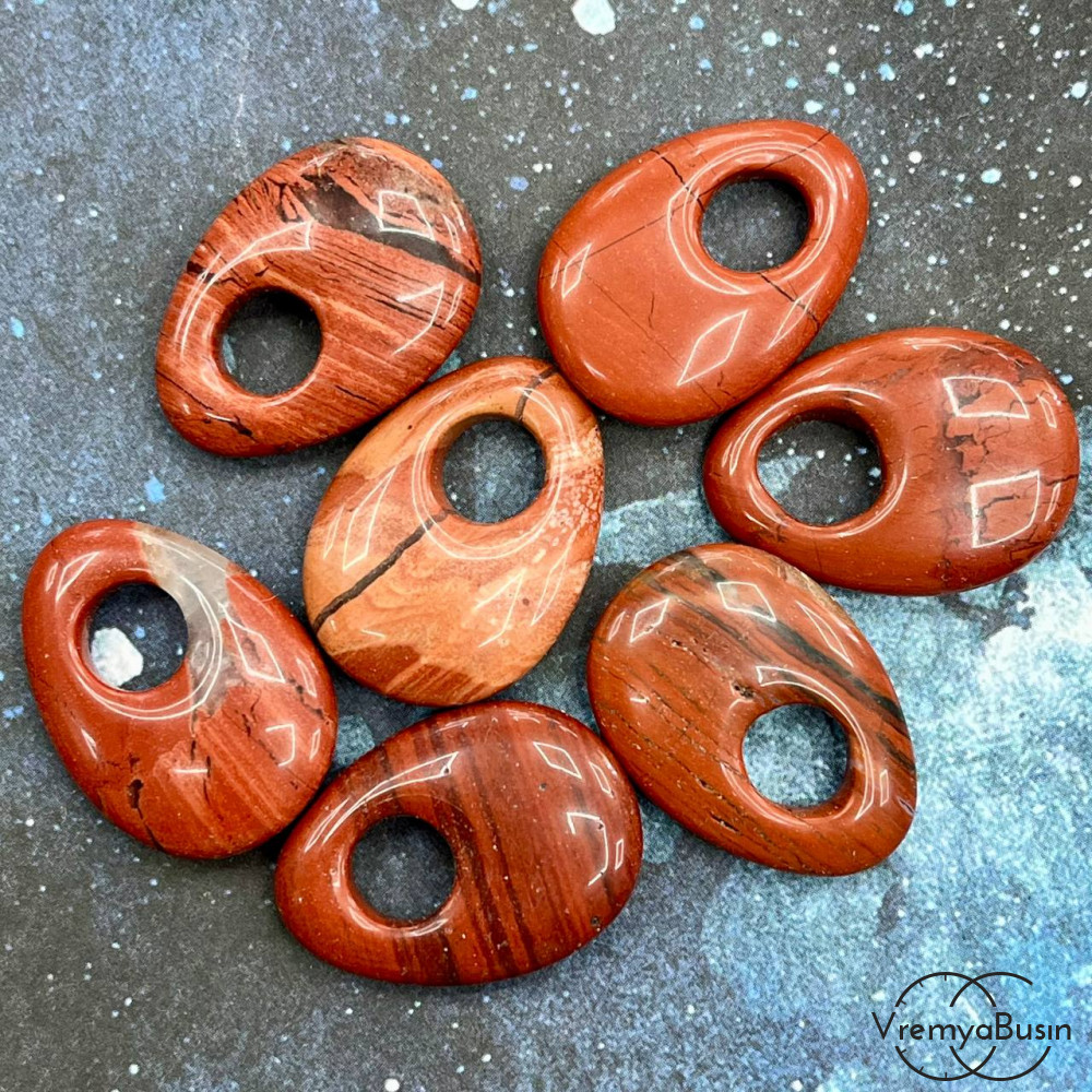 • Яшма красная. Кулон из камня пончик, бублик 18х25х6 мм (1 шт.)