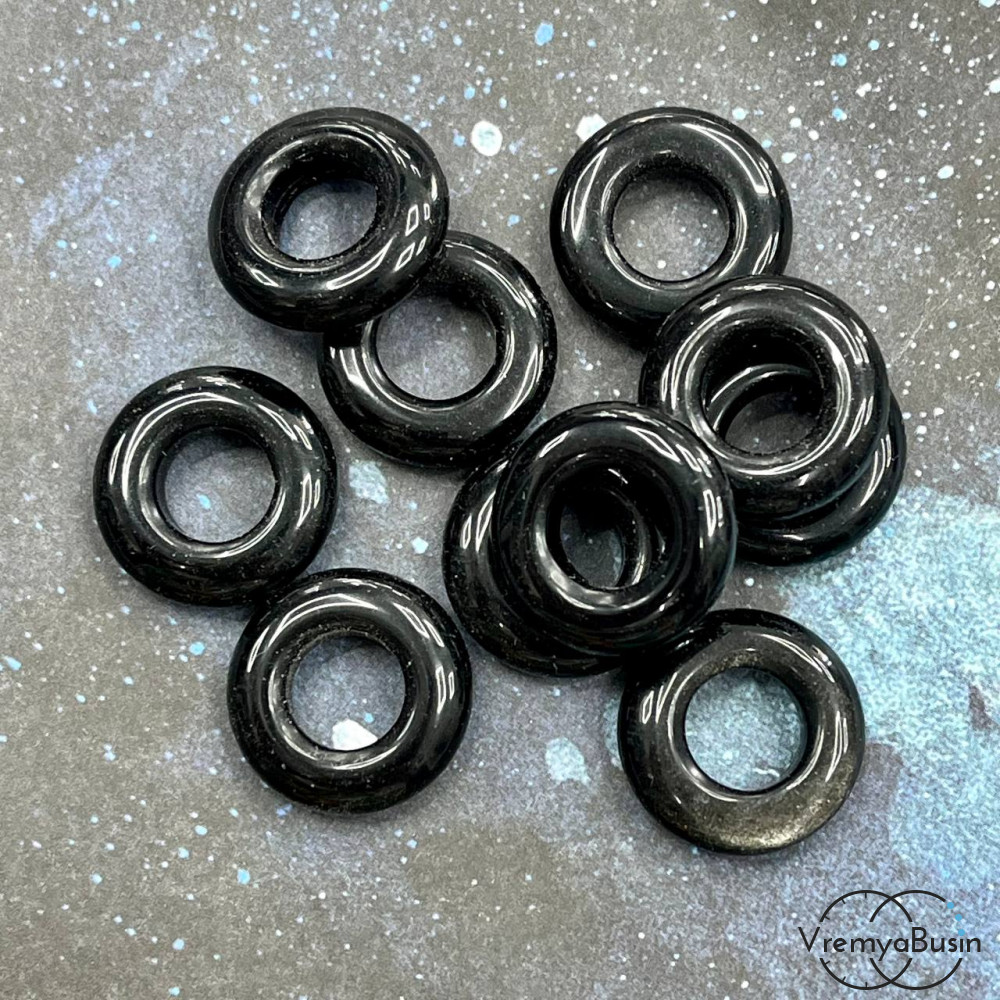 • Обсидиан. Кулон из камня пончик, бублик 20 мм (1 шт.)