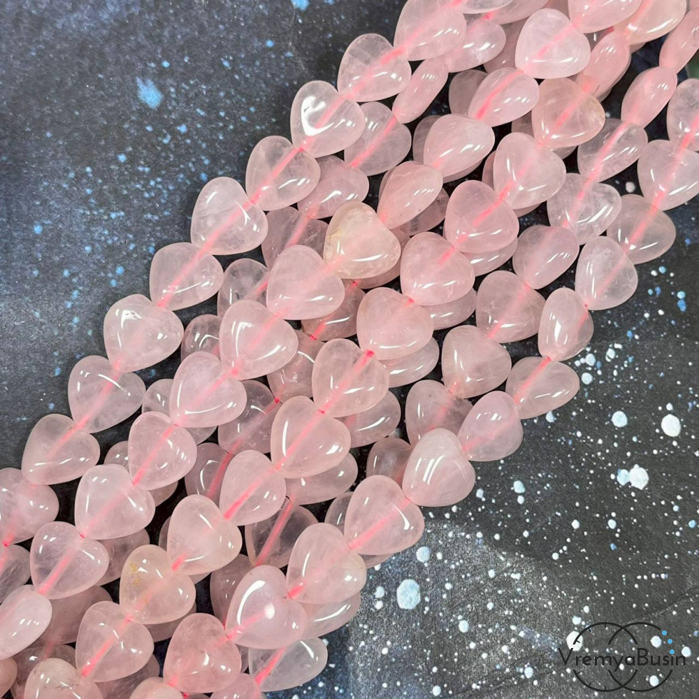 • Розовый кварц, сердце гладкое 10 мм (1/2 нити, ок. 19 шт.)