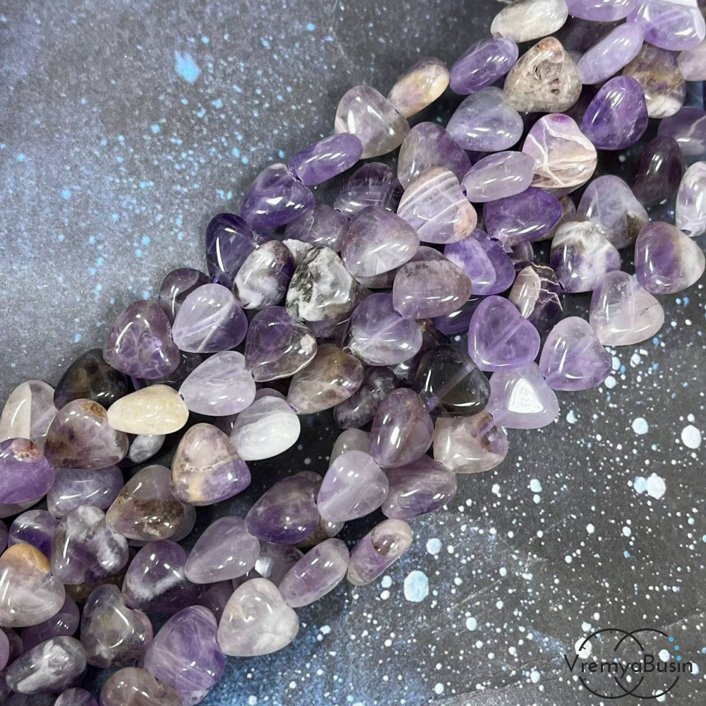 • Аметист, сердце гладкое 10 мм (1/2 нити, ок. 19 шт.)