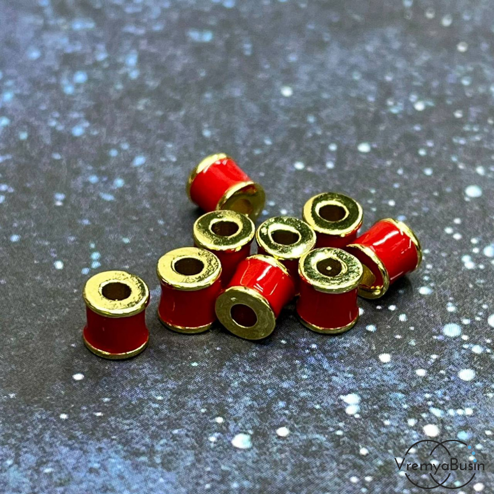 • Бусины разделители с эмалью, трубочки 5х6 мм, позолота, цв. красный (упак. 2 шт.)