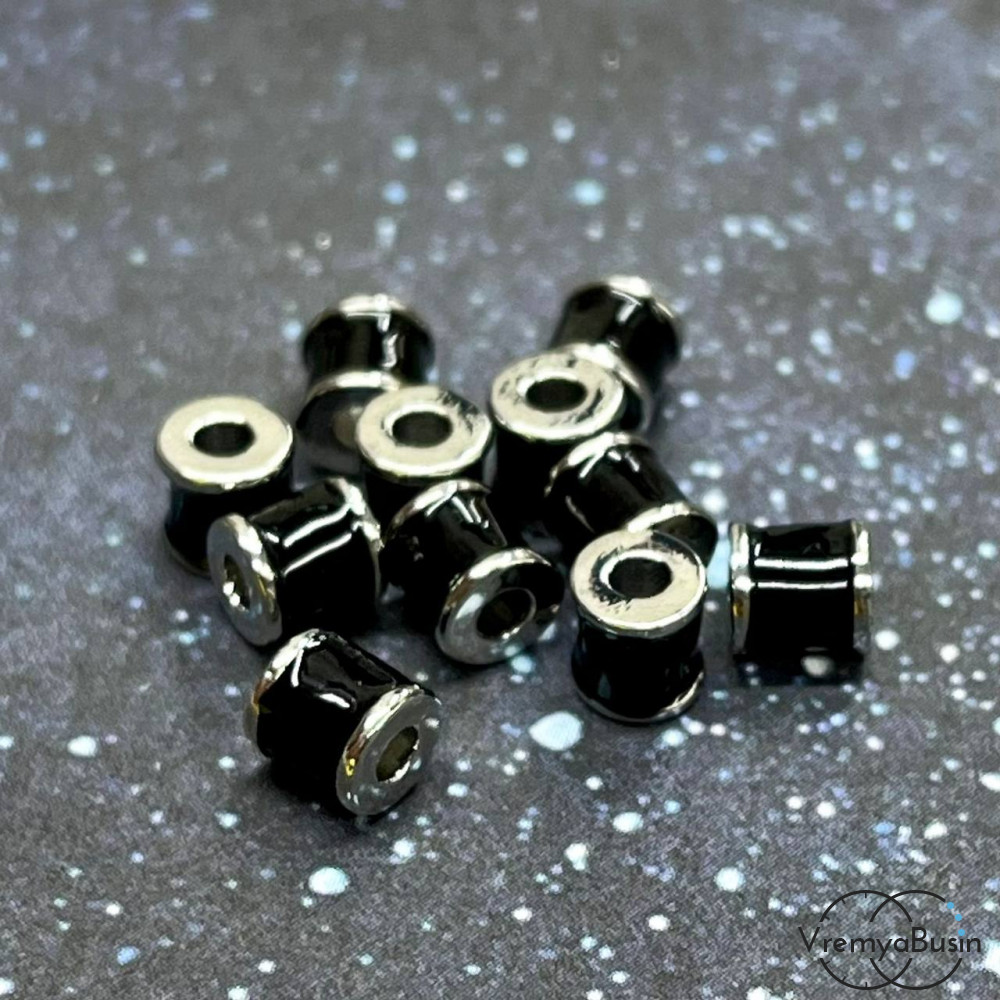• Бусины разделители с эмалью, трубочки 5х6 мм, родий, цв. черный (упак. 2 шт.)