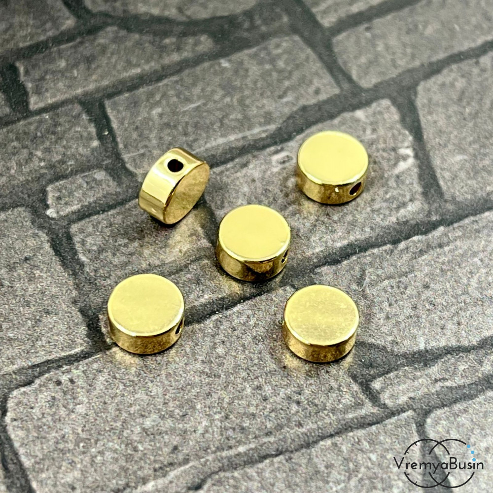 Бусины разделители, таблетка 6х3 мм, латунь с позолотой (упак. 5 шт.)