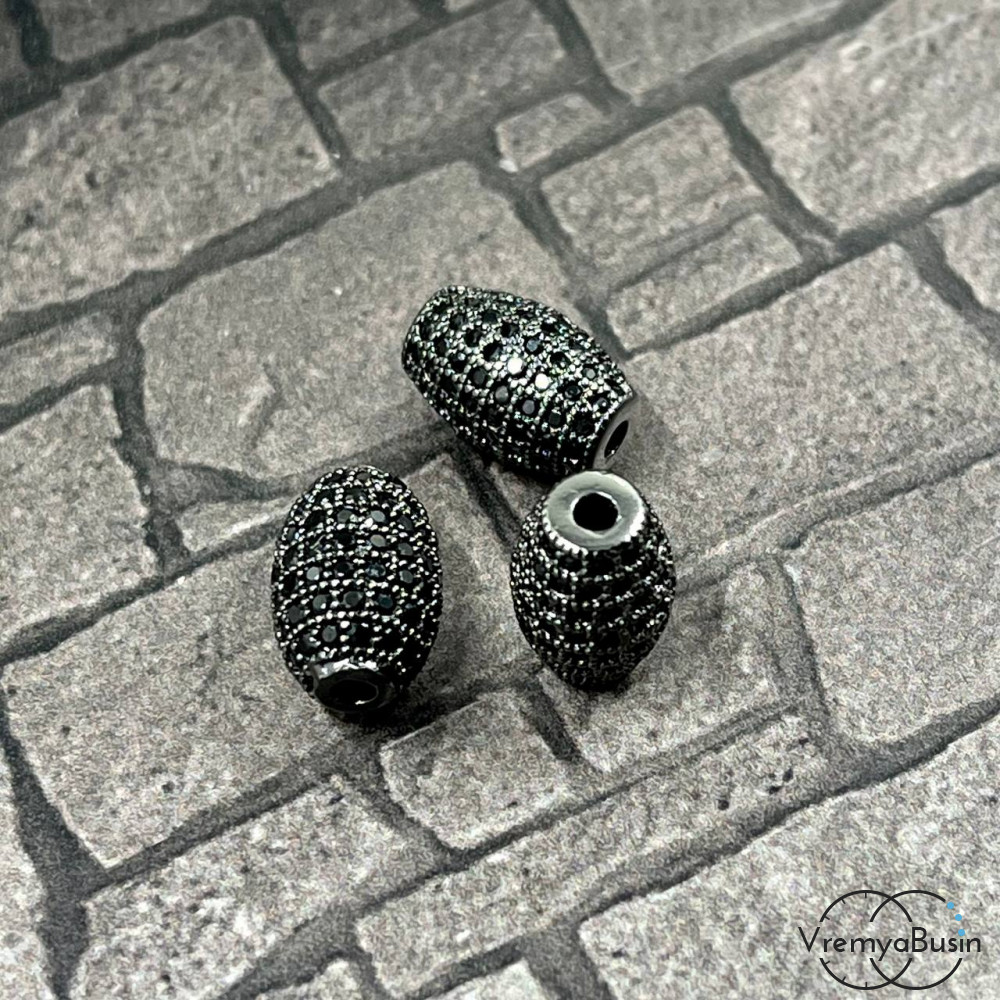 Бусина с фианитами, 8х11 мм, латунь с черным родиевым покрытием (1 шт.)