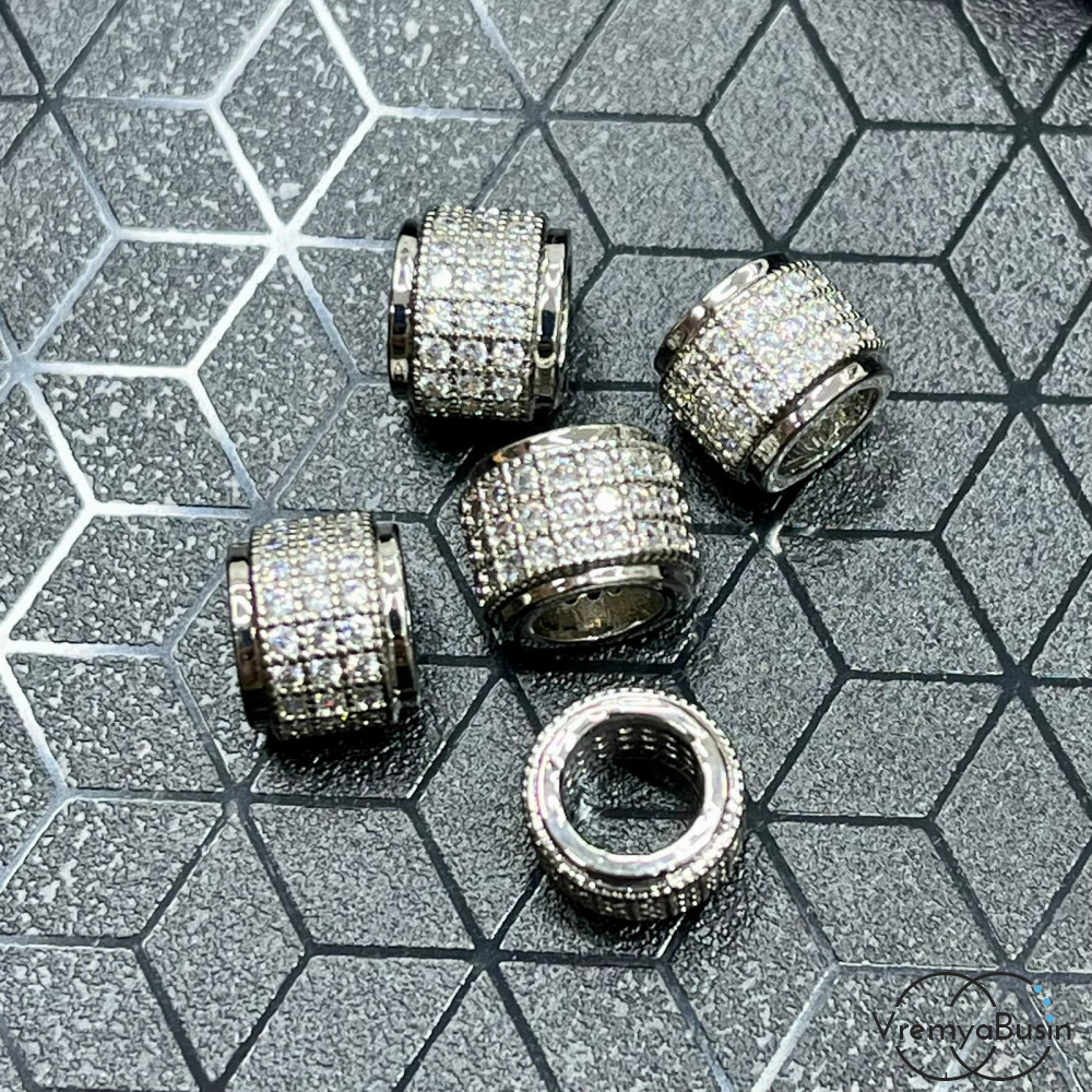 Бусина с фианитами, кольцо 6х8 мм, латунь с родиевым покрытием (1 шт.)