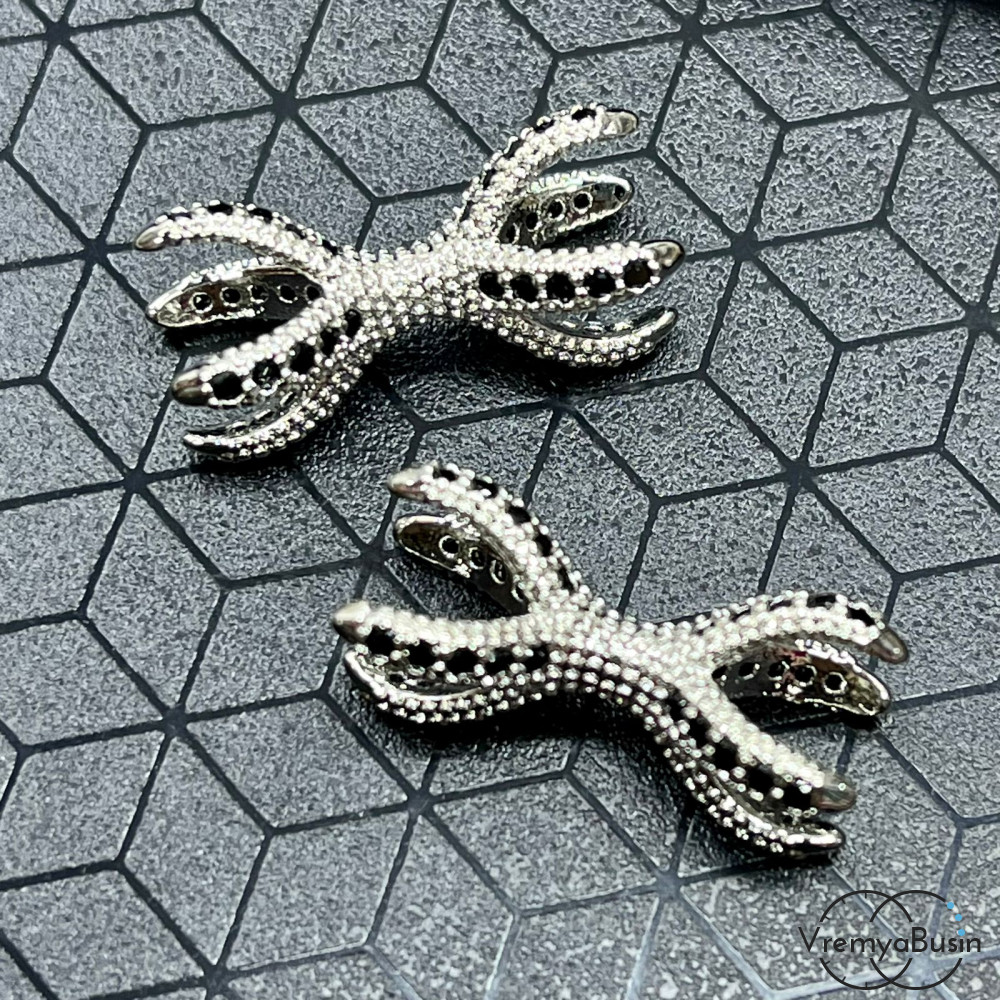 Бусина с фианитами, лапа 20х8 мм, латунь с родиевым покрытием (1 шт.)