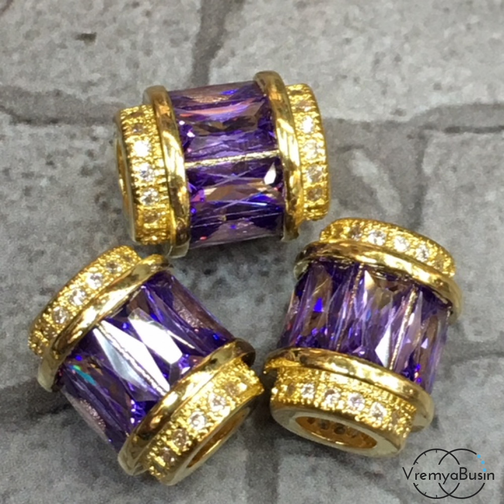 • Бусина с фианитами, латунь с позолотой (1 шт.)