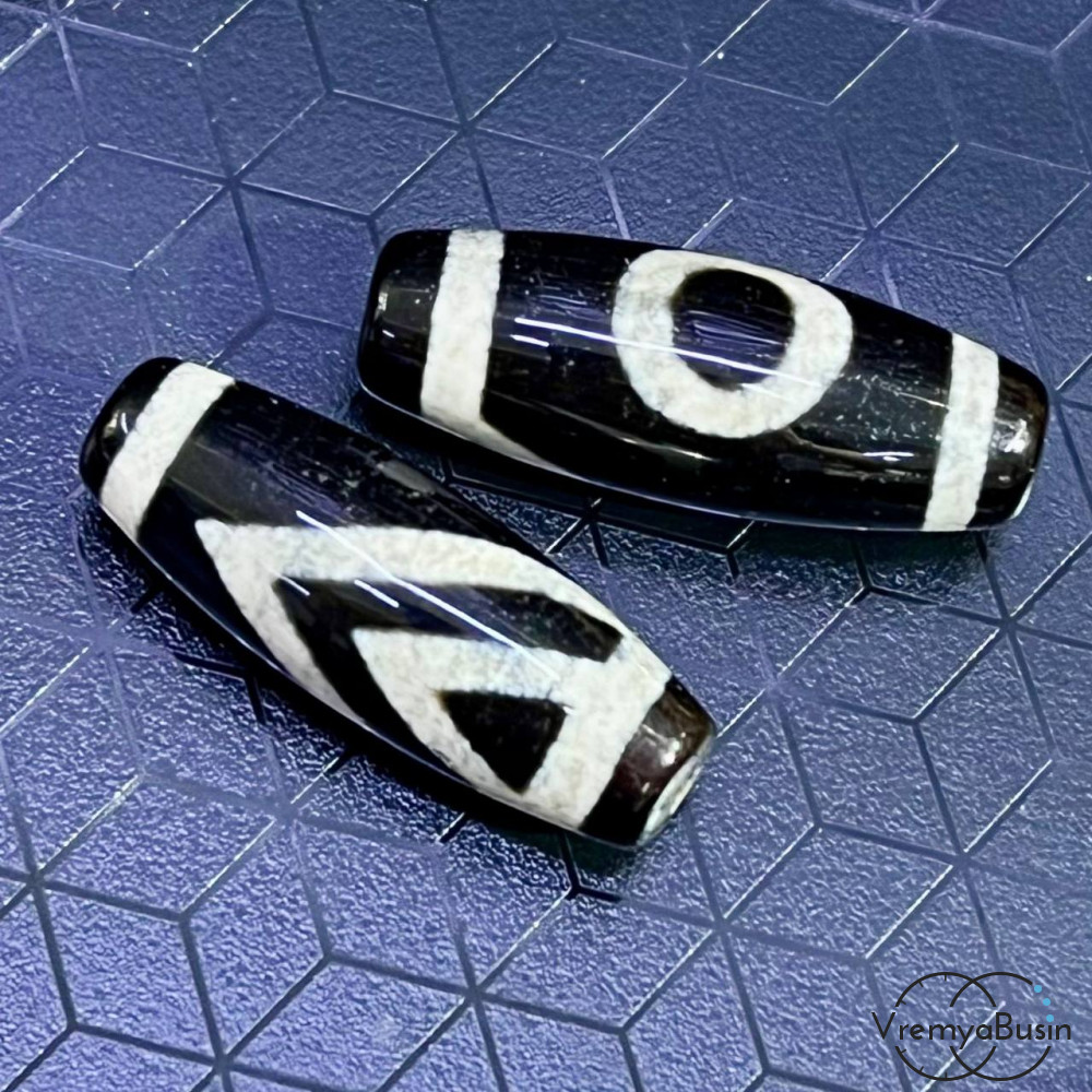 • Бусина Дзи из агата "Небо и горы", 30х10 мм (1 шт.)