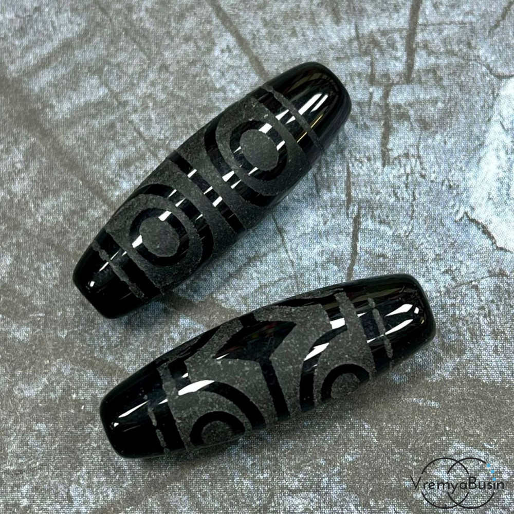 • Резная бусина Дзи из агата, "4 глаза" 30х12 мм (1 шт.)