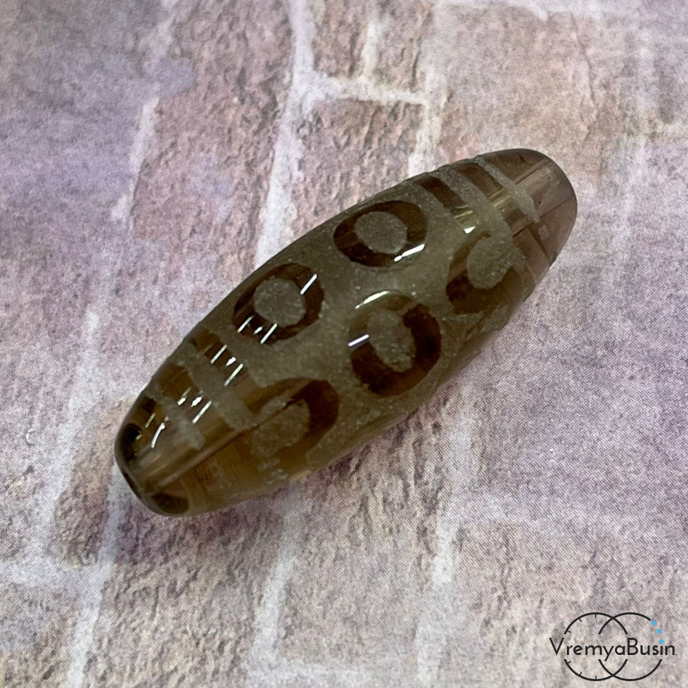 • Резная бусина Дзи из раухтопаза "7 глаз", 30х12 мм (1 шт.)