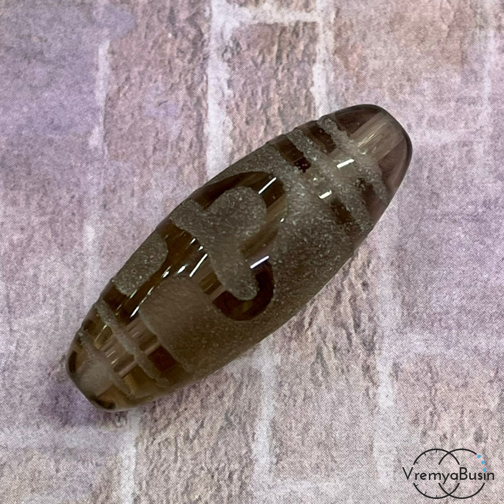 Резная бусина Дзи из раухтопаза "Бодхи", 30х12 мм (1 шт.)