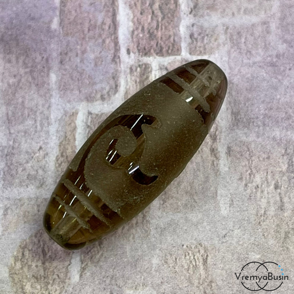 Резная бусина Дзи из раухтопаза "Зеленая тара", 30х12 мм (1 шт.)