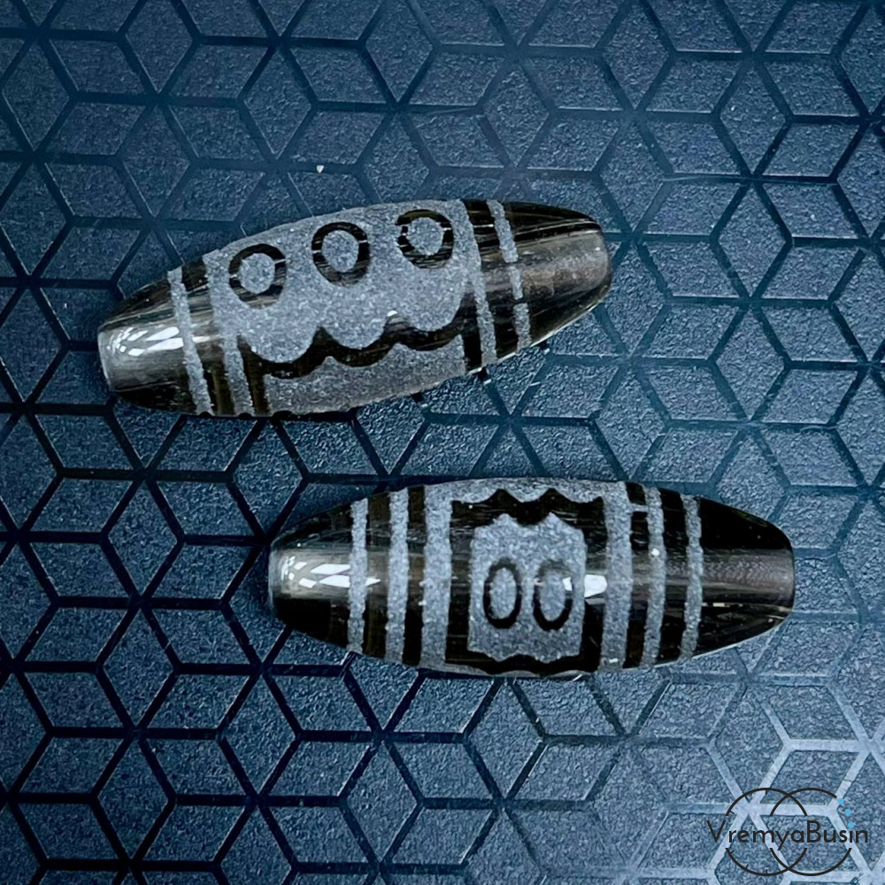 Резная бусина Дзи из раухтопаза "Пять глаз", 30х12 мм (1 шт.)
