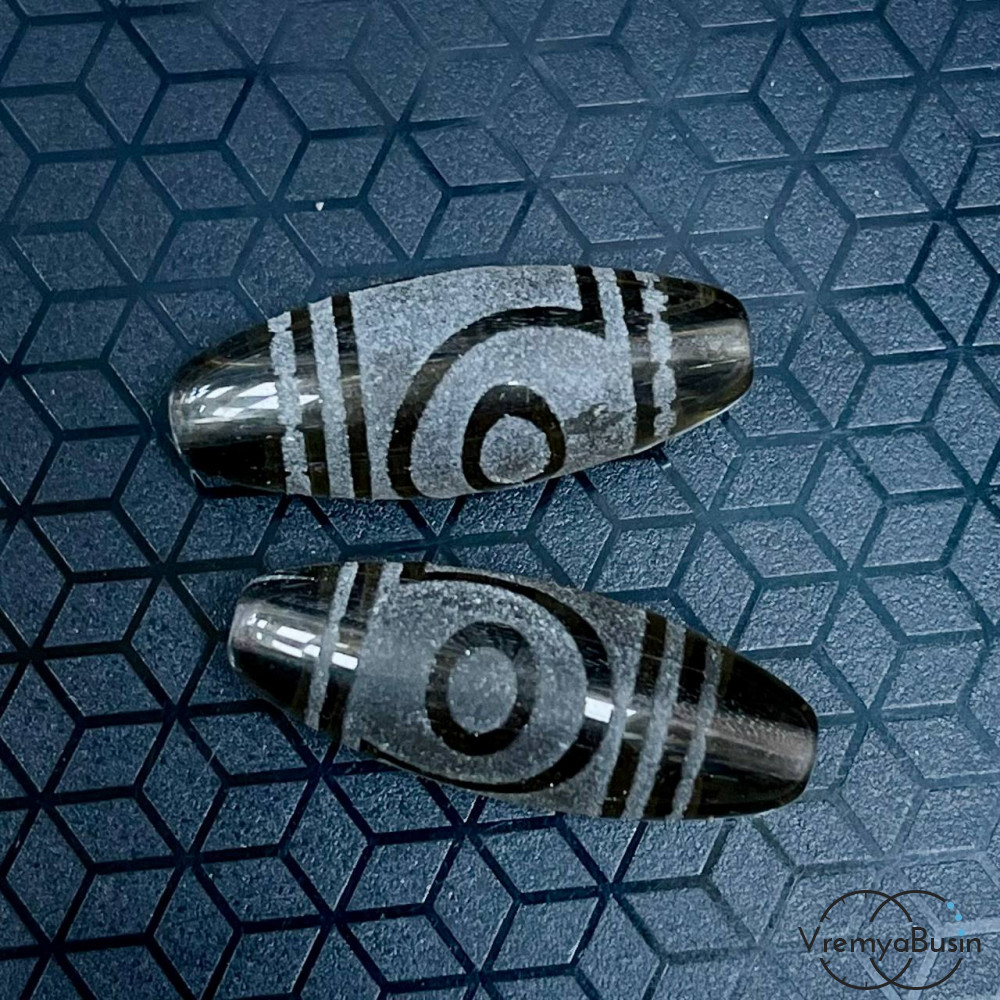 • Резная бусина Дзи из раухтопаза "Два глаза", 30х12 мм (1 шт.)