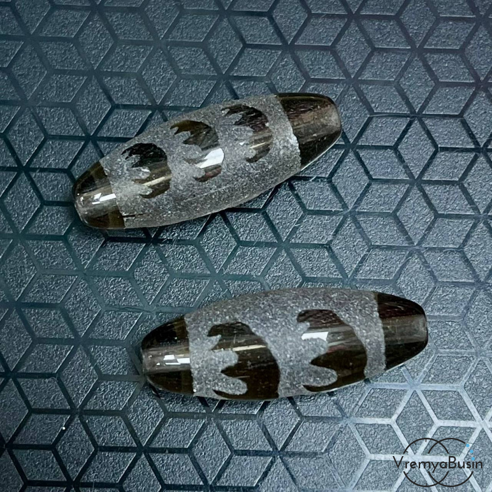 Резная бусина Дзи из раухтопаза "Пять летячих мышей", 30х12 мм (1 шт.)