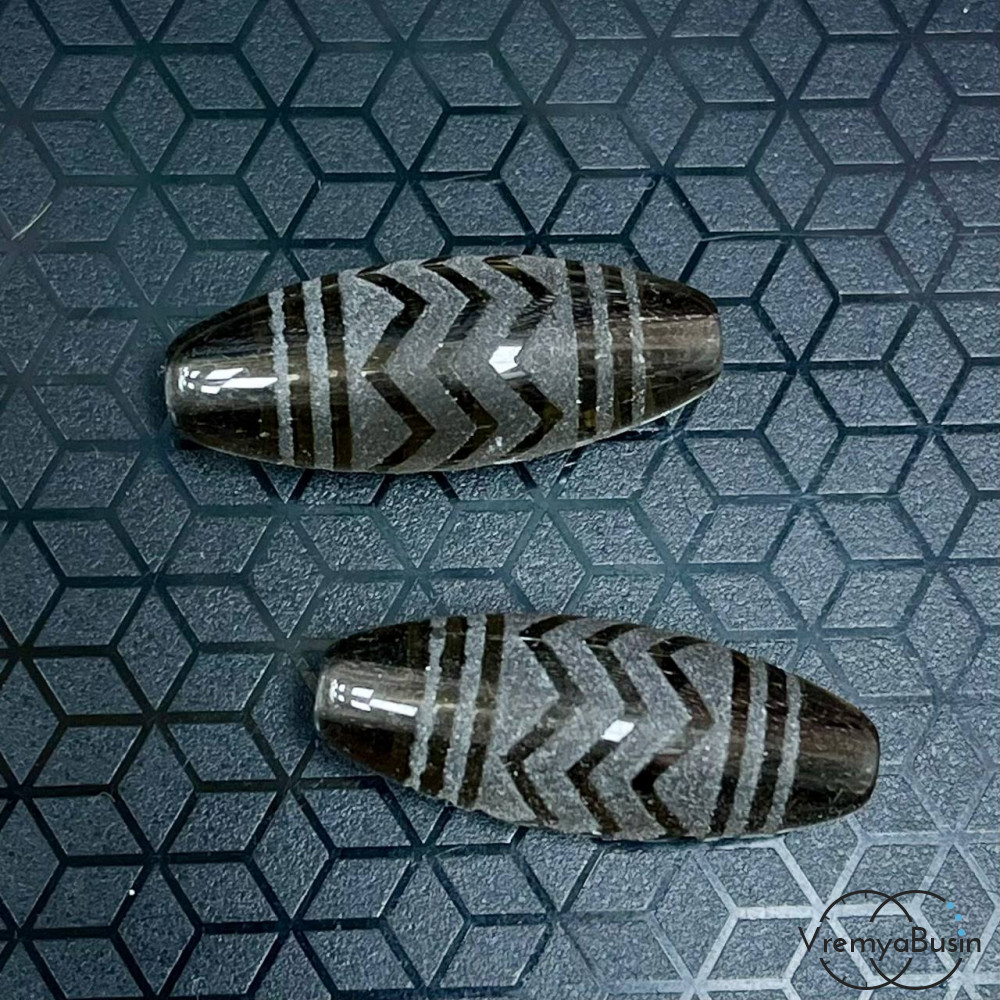 Резная бусина Дзи из раухтопаза "Зубы тигра", 30х12 мм (1 шт.)