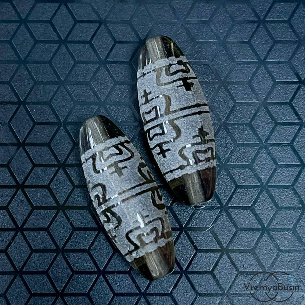 Резная бусина Дзи из раухтопаза "Нектарный сосуд - 8 чаш", 30х12 мм (1 шт.)