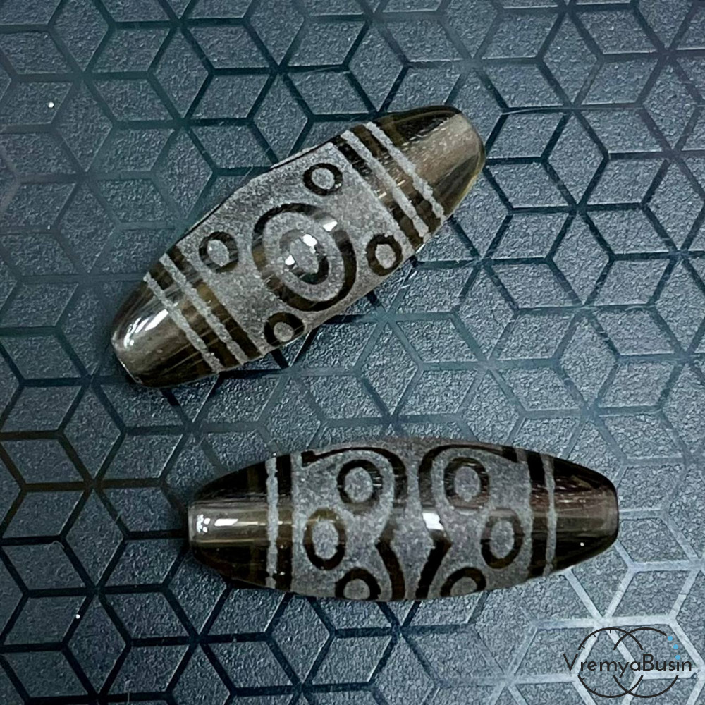 Резная бусина Дзи из раухтопаза "Одиннадцать глаз", 30х12 мм (1 шт.)