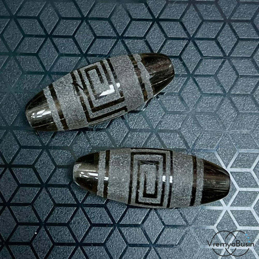 Резная бусина Дзи из раухтопаза "Лабиринт", 30х12 мм (1 шт.)