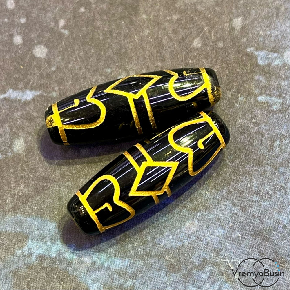 • Тибетская бусина Дзи «4 сердца Будды», 10х30 мм (1 шт.)