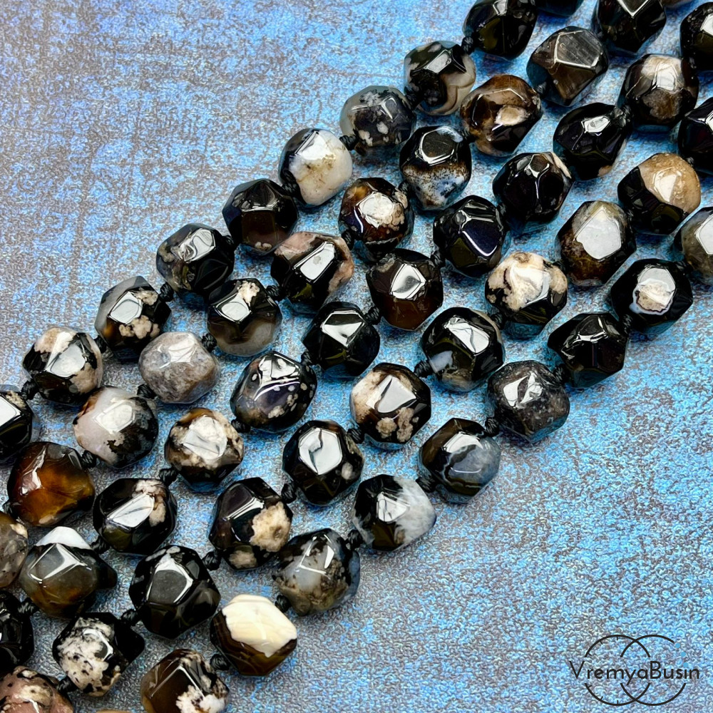 Агат, бусины свободной огранки, ок. 12 мм (нить, ок. 30 шт.)