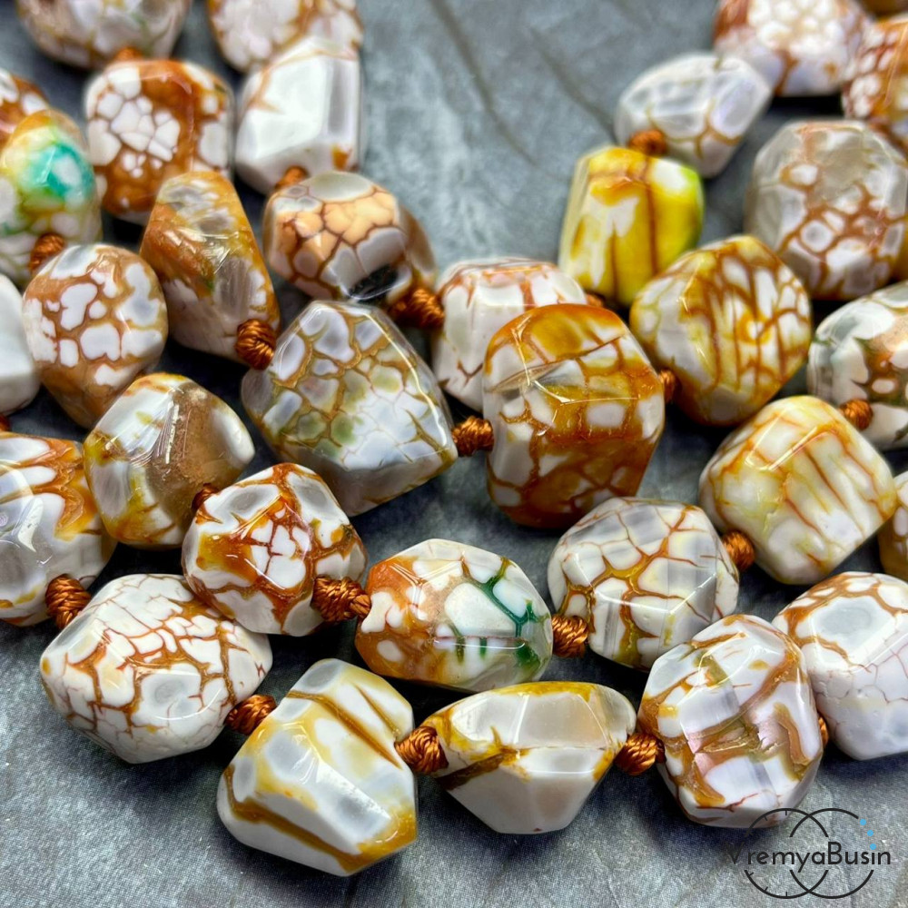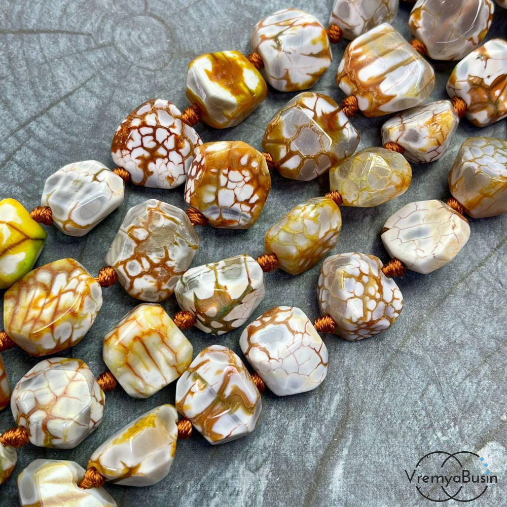 Агат вены дракона, галтовка с гранями, ок. 20 мм (нить, ок. 18 шт.)