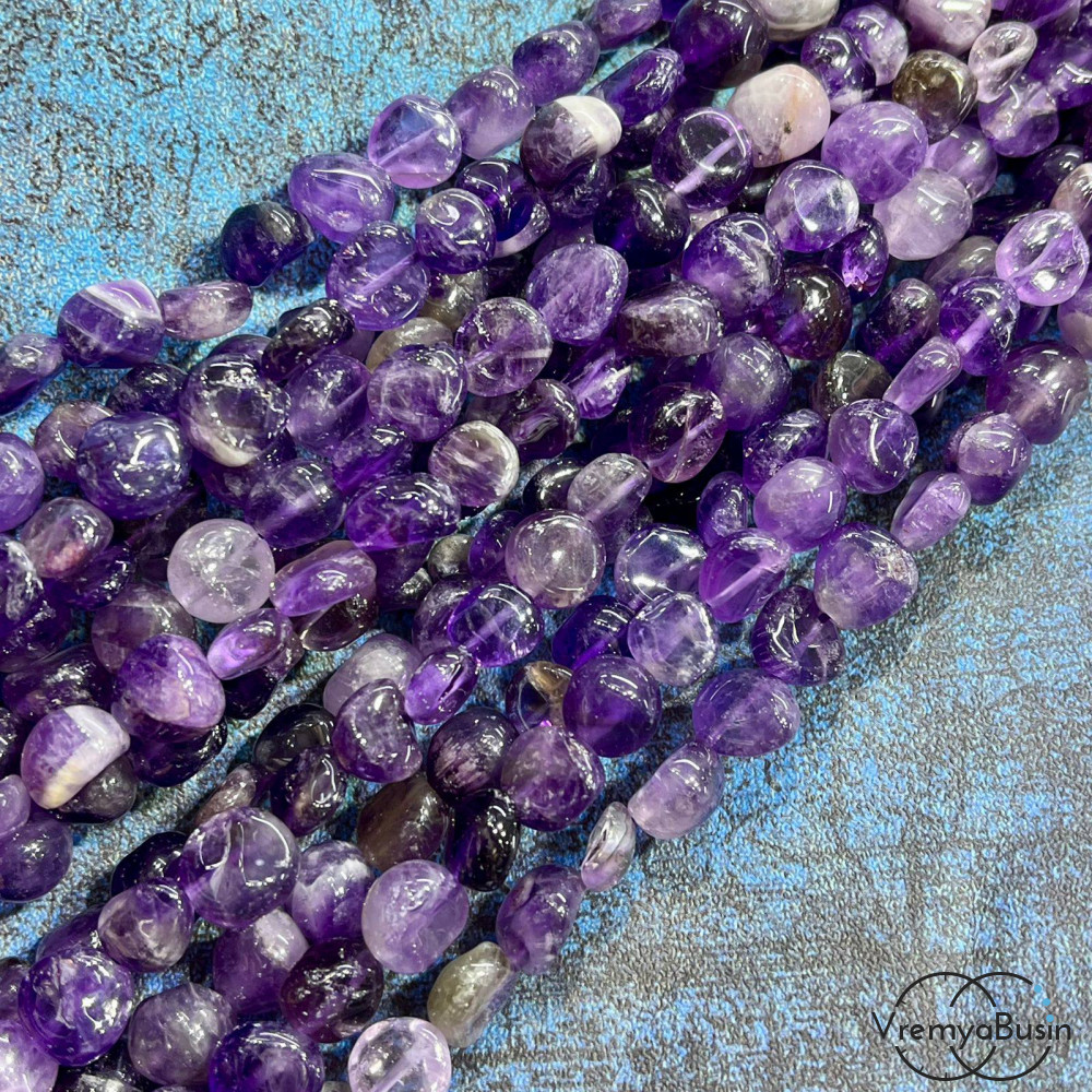 Аметист, галтовка округлая ок. 10 мм (нить, ок. 40 шт.)