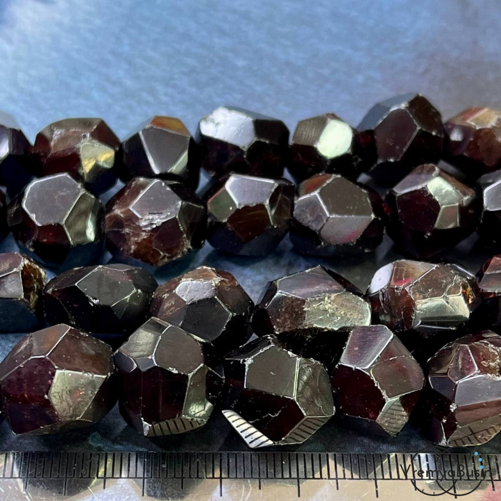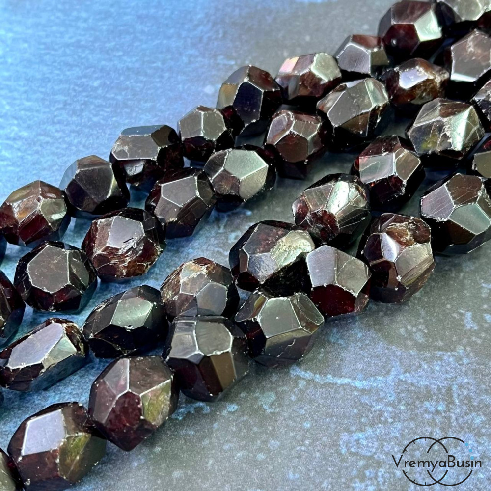 Гранат, галтовка с гранями, ок. 15 мм (1/2 нити, ок. 13-14 шт.)