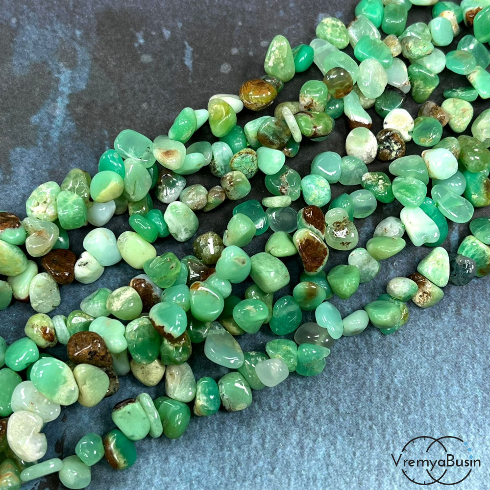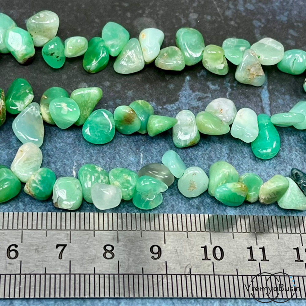 Хризопраз, галтовка мелкая с отверстием через край, ок. 6х9 мм (нить, ок. 90 шт.)
