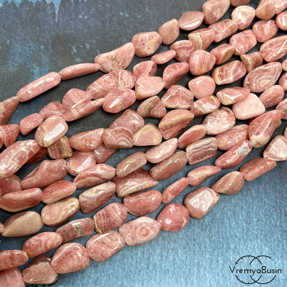 Родохрозит натур., галтовка овальная ок. 10х14 мм (нить, ок. 26 шт.)