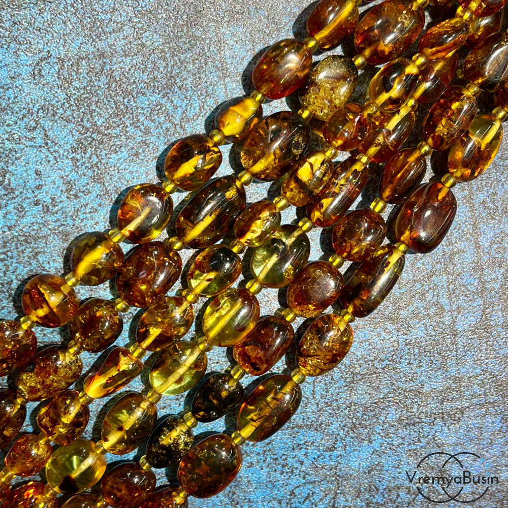 Янтарь натур., галтовка овальная ок. 10х12 мм (нить, ок. 35 шт.)
