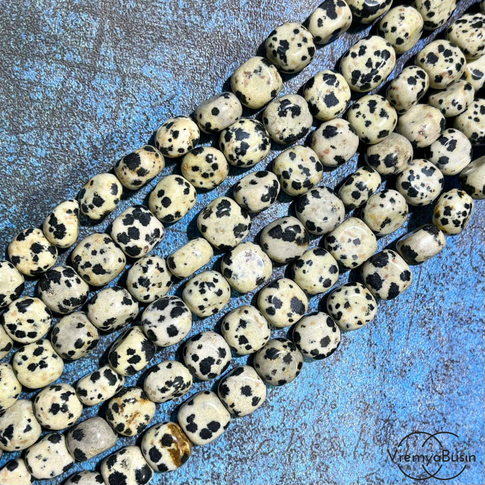 • Яшма долматин, порфир, галтовка округлая ок. 10 мм (нить, ок. 35 шт.)