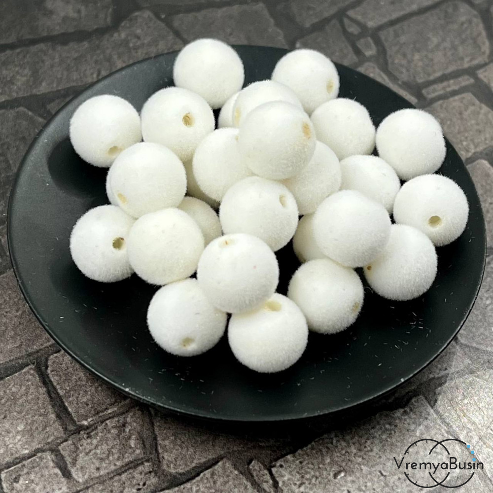 Бусина акриловая с бархатной поверхностью, 10 мм, цв. белый (1 шт.)