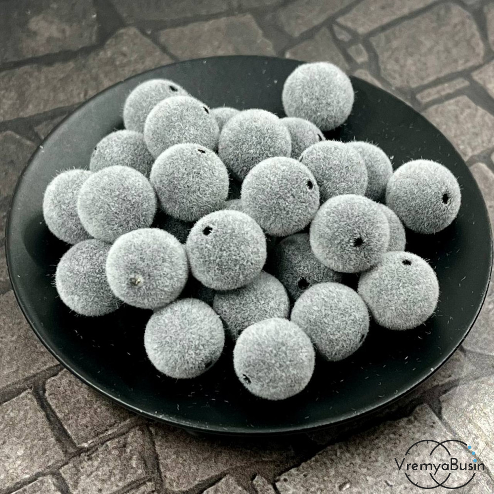 Бусина акриловая с бархатной поверхностью, 10 мм, цв. серый (1 шт.)