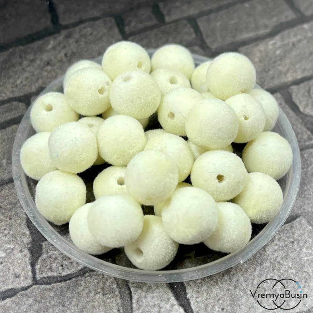 Бусина акриловая с бархатной поверхностью, 8 мм, цв. белый (1 шт.)