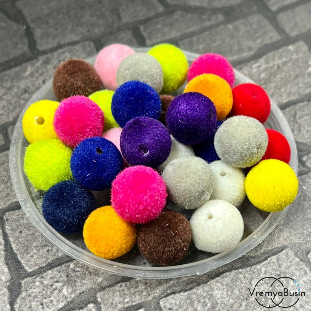 Бусина акриловая с бархатной поверхностью, 8 мм, цв. микс (1 шт.)