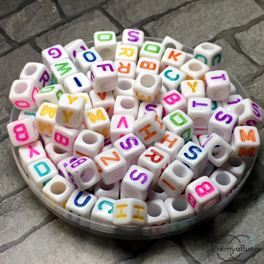 Бусины акриловые с буквами, кубики, 6х6 мм, латинский алфавит (1 шт.)