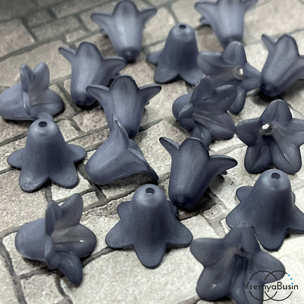 Бусины акриловые колокольчики, 12х17 мм, цв. матовый черный (упак. 10 шт.)