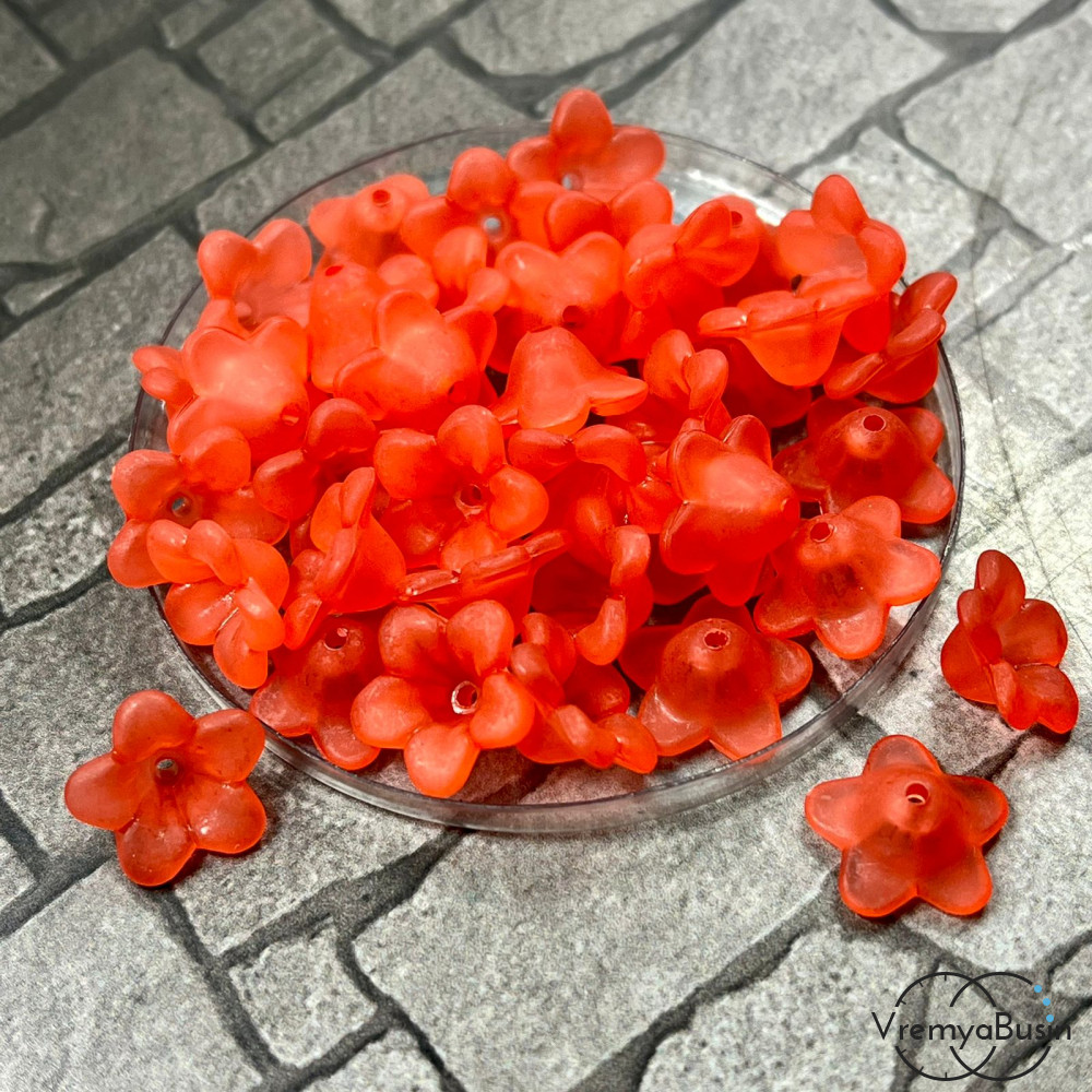 Цветочек акриловый матовый, 12х6 мм, цв. красный (упак. 10 шт.)